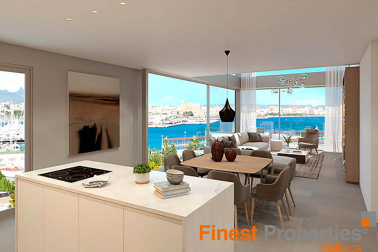 Este complejo residencial de lujo con tan solo 15 apartamentos se está construyendo a tan solo 3 minutos del centro de Palma. En las inmediaciones se encuentran numerosos restaurantes, pequeñas boutiques y un conocido centro comercial. El complejo combina un diseño moderno con fantásticas vistas al puerto deportivo de Palma. Ofrece 15 apartamentos de lujo equipados con suelo radiante y aire acondicionado frío/calor, una amplia zona comunitaria con amplias terrazas, una elegante piscina exterior, una zona de bienestar con gimnasio, sauna y piscina cubierta. Además, el complejo ofrece un amplio aparcamiento subterráneo de 3 plantas con generosas plazas por unidad. Los apartamentos tienen un precio desde 2.100.000 € para un apartamento de 2 dormitorios con 188 m² de superficie construida, hasta 5.100.000 € para un ático dúplex con una gran azotea, 3 dormitorios y aproximadamente 224 m² de superficie construida, además de una azotea de 64 m² con piscina privada. Todos los apartamentos están construidos con los más altos estándares y están construidos con materiales de alta calidad.