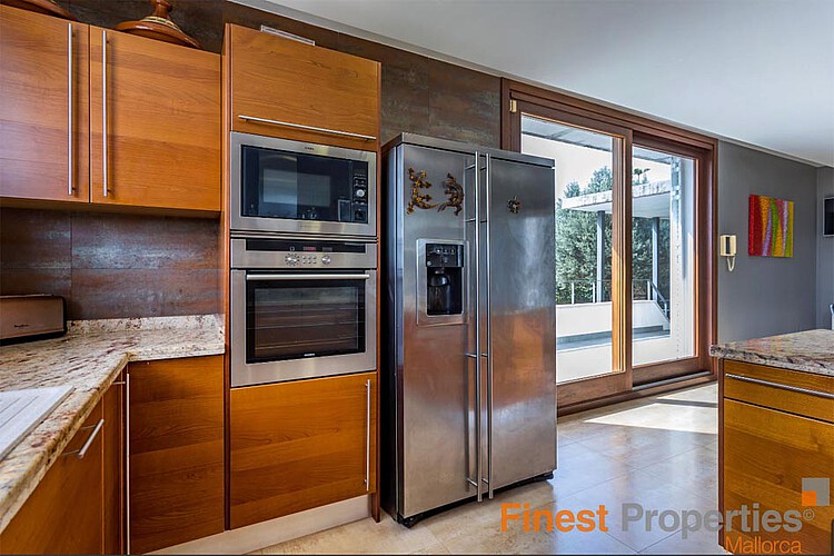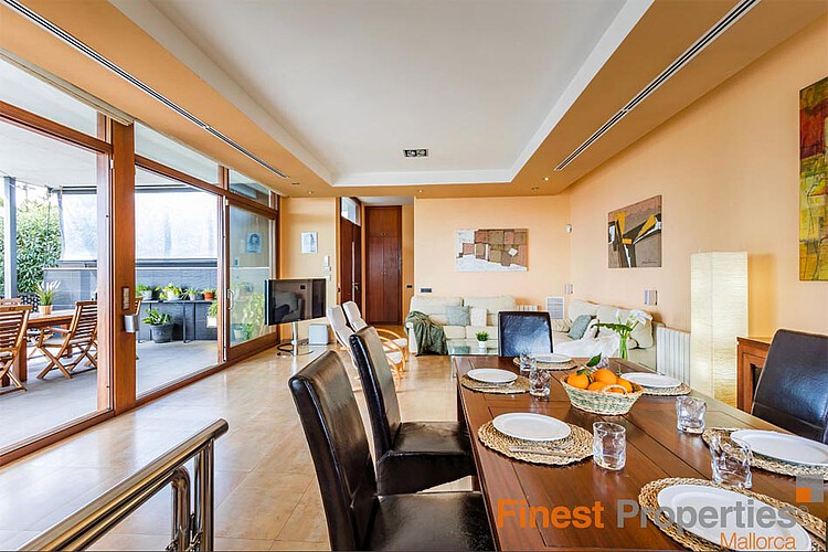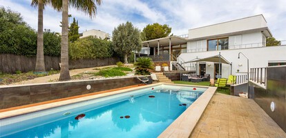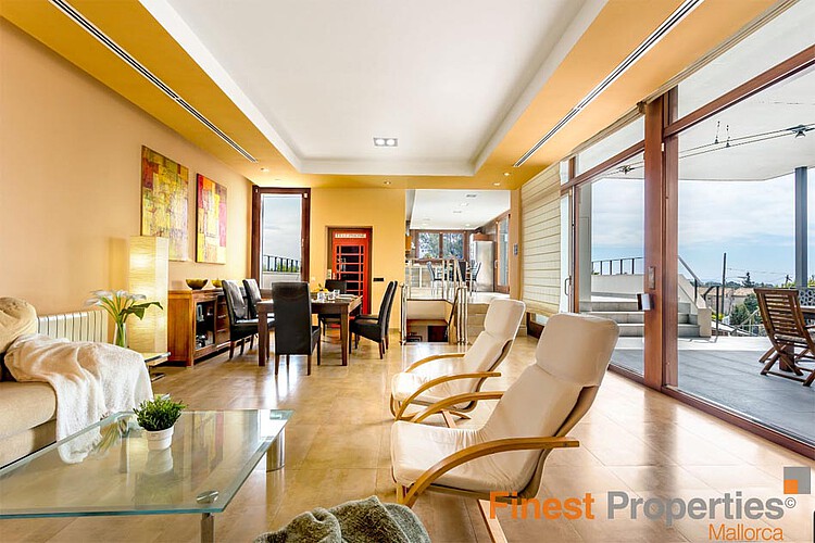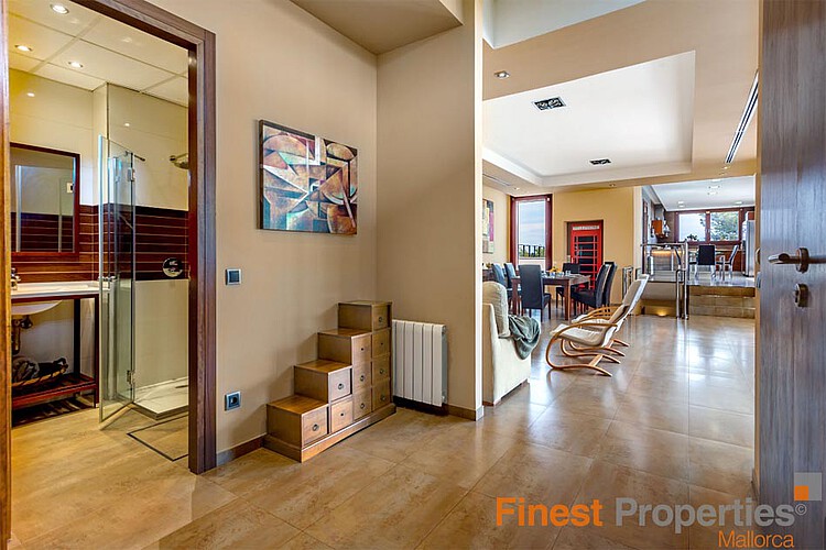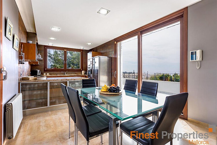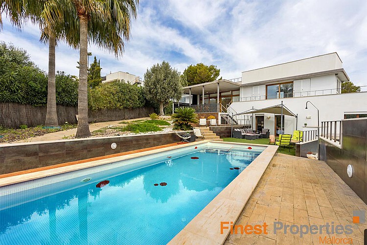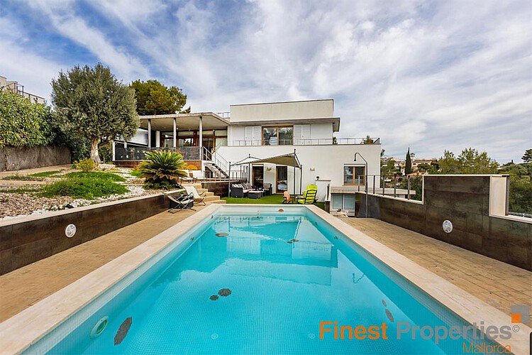 Esta preciosa villa con piscina y jardín privados se encuentra en una zona tranquila a las afueras de Génova, cerca de la capital de la isla, Palma. La casa tiene una superficie útil de unos 350 m² divididos en 3 plantas, a las que se accede por escaleras y ascensor. El área de entrada está en el primer piso y recorre la planta baja y el sótano. En la 1ª planta, junto a la zona de entrada, se encuentra un salón-comedor diáfano y luminoso con zona de estar, así como una amplia cocina equipada con amplio espacio de trabajo y vistas al Castillo de Bellver. Desde el salón y la cocina se accede directamente a la gran terraza con espacio suficiente para muebles de jardín y una vista única al mar. También en esta planta hay un baño con plato de ducha y otra habitación que se puede utilizar como dormitorio o estudio. En la planta baja, además del gran dormitorio principal, hay otros dos dormitorios, un baño con ducha y un lavadero que se puede convertir en un gimnasio con sauna. El dormitorio principal tiene un baño abierto equipado con ducha y bañera con función de hidromasaje. Dos de los dormitorios tienen acceso directo a la terraza y piscina. Todos los dormitorios tienen un gran armario empotrado con frentes de madera maciza. En el sótano de la villa, junto al gran garaje con espacio para dos coches, hay un apartamento de invitados con acceso propio, un baño y mucho espacio de almacenamiento.Los extras incluyen: aire acondicionado frío/calor, calefacción central y ascensor. Todas las informaciones en este exposé están basadas en la información que se ha transmitido del vendedor. Por lo tanto, Finest Properties Mallorca S.L. no asuma ninguna responsabilidad por la integridad, exactitud y actualidad de esta información. Los precios declarados no incluyen los costos a cargo del comprador, tales como impuestos, notario, registro de la propiedad y gastos de gestos. Un posible sujeto a venta previa.