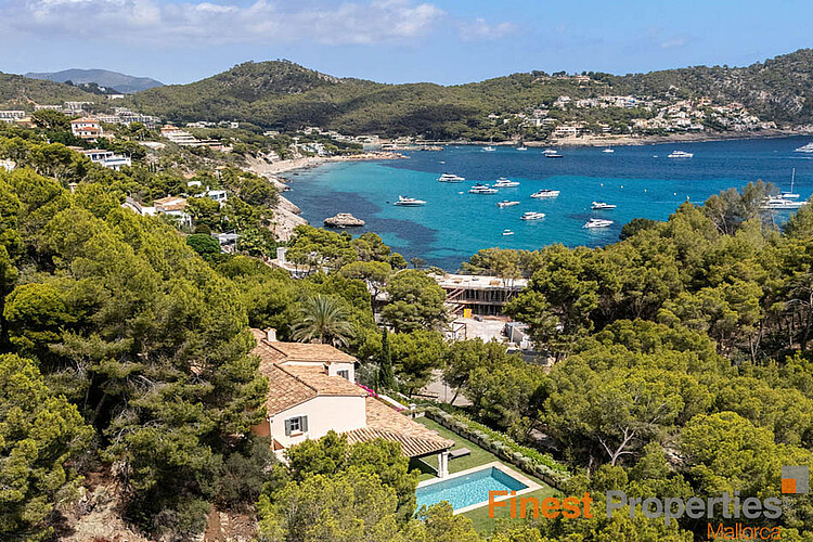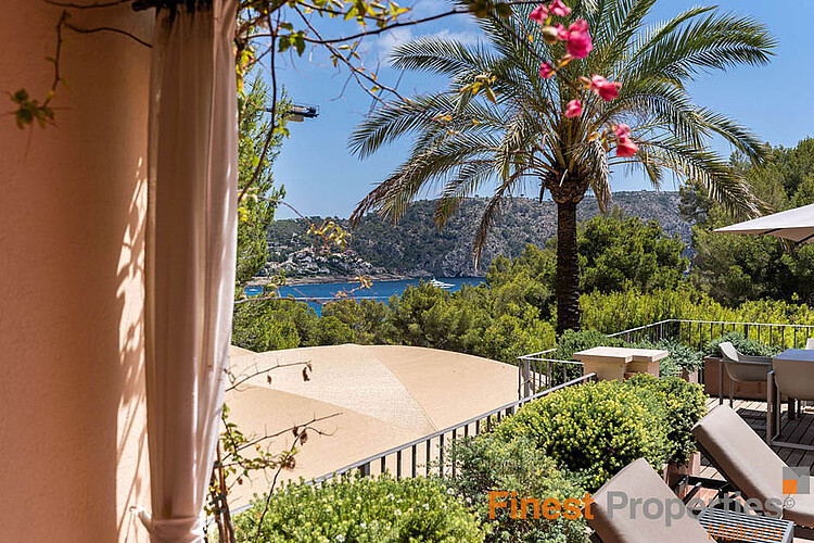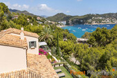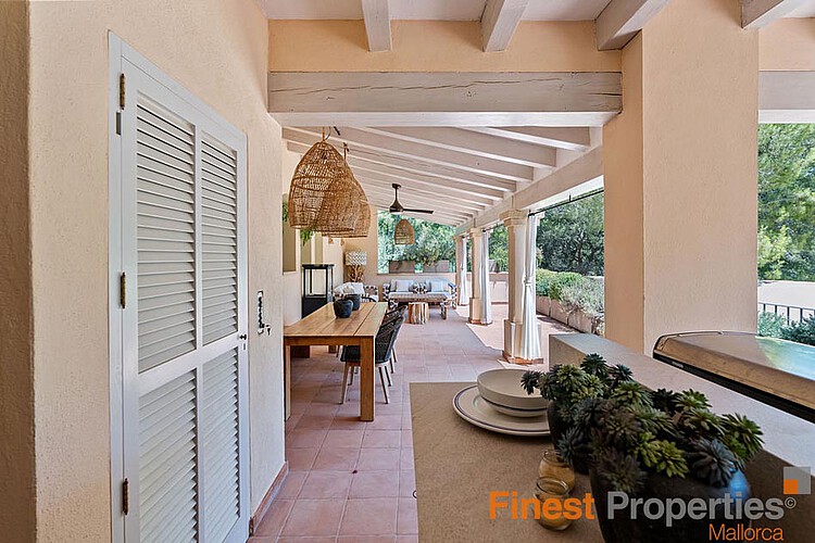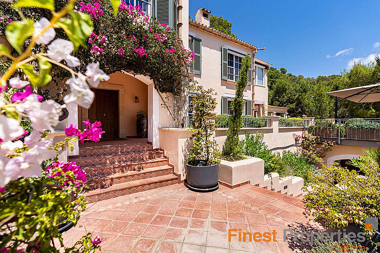 Camp de Mar es una zona residencial muy popular en el suroeste de Mallorca, perteneciente al municipio de Andratx. La propiedad se ubica en una parcela en ladera de aproximadamente 2200 m² con vistas al mar y ofrece aproximadamente 290 m² de espacio habitable en dos plantas más sótano. Con seis dormitorios y cuatro baños, ofrece amplio espacio para una familia con niños e invitados. Entre sus características se incluyen aire acondicionado frío/calor en los dormitorios y el salón-comedor, calefacción central de gasóleo en todas las estancias, cocina totalmente equipada, suelos de piedra natural, una acogedora chimenea en el salón y sistema de sonido Sonos en toda la propiedad. En el exterior, encontrará una piscina climatizada de agua salada, ducha exterior, sauna y gimnasio, sistema de alarma con detectores de movimiento y cámaras, garaje doble y plazas de aparcamiento cubiertas exteriores. Además, dispone de un amplio lavadero, trastero y ascensor de servicio.