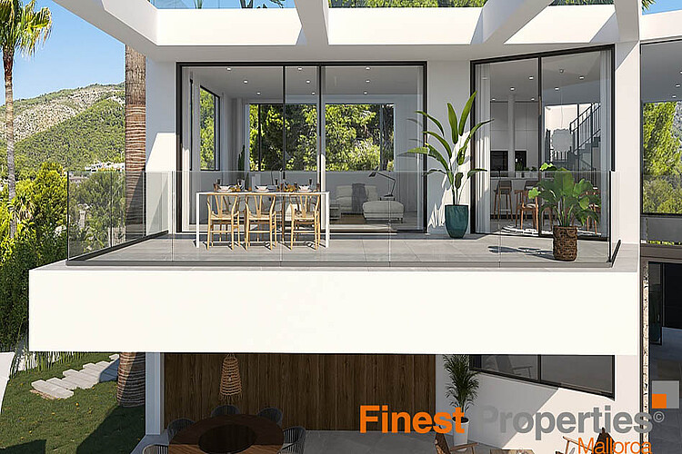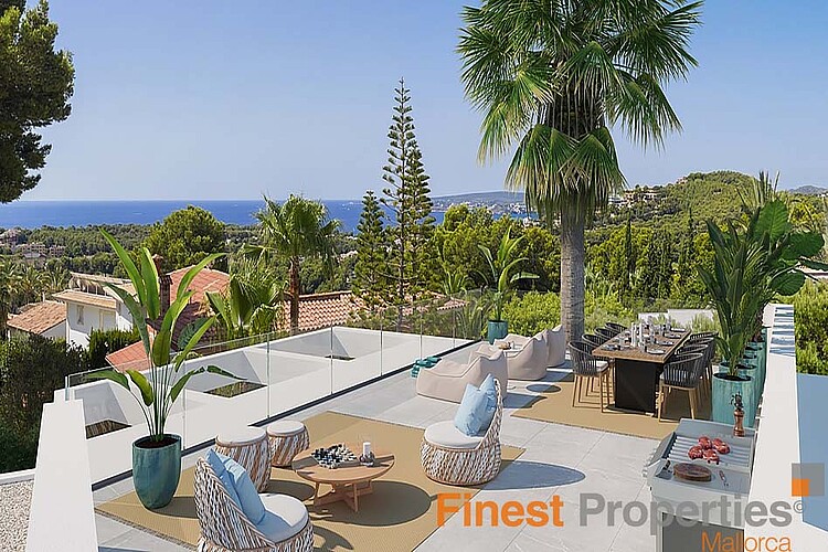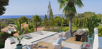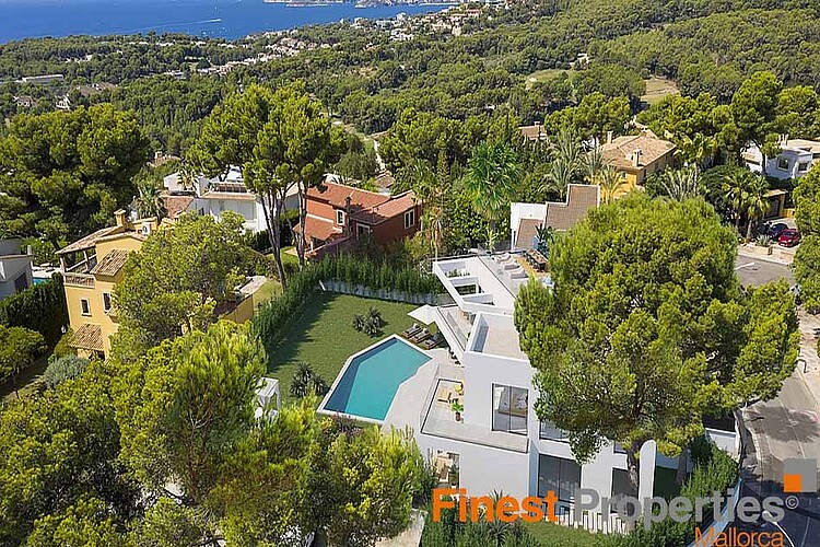 Cas Catala es una zona residencial muy popular y de alta calidad a las puertas de Palma de Mallorca. Está a sólo unos minutos en coche del campo de golf de Bendinat, colegios internacionales, supermercados y restaurantes. Esta moderna villa es de última generación y fue construida con la más alta calidad de construcción. Se encuentra en el punto más alto de Cas Catala en una parcela llana de 1219m². Tiene 4 dormitorios en la planta baja, todos con baño en suite. Dos terrazas cubiertas ofrecen espacio para un comedor y un salón chill-out con vista a la piscina y al jardín. En la primera planta se encuentra el gran dormitorio principal con baño en suite y el salón-comedor abierto con cocina de diseño e isla de cocina. El dormitorio principal con vestidor y baño en suite tiene su propia terraza desde la que se puede disfrutar de una vista al mar. Desde el nivel de vida principal se puede llegar a la azotea desde la que se tiene una vista de ensueño absoluta. El garaje ofrece espacio para 2 coches y tiene un montacargas hasta la cocina en el 1er piso. Las características incluyen ventanas panorámicas Schücco, baldosas de piedra, BUS domotic System, aire acondicionado reversible y calefacción por suelo radiante (bomba de calor).