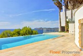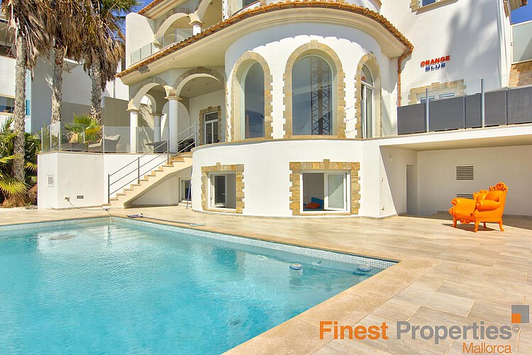Esta villa en primera línea del Mediterráneo se encuentra en El Toro, una zona tranquila, Zona residencial en el suroeste de Mallorca. La villa tiene aproximadamente 350 m² de espacio habitable y se encuentra en una parcela de 792 m². La casa ofrece una sala de estar abierta y luminosa, una cocina equipada con barra de desayuno, 3 dormitorios, 3 baños en suite y un gimnasio, todo amueblado con materiales de alta calidad.Desde todos los ambientes de la casa se tiene una espectacular vista al mar y románticos atardeceres. Además hay un apartamento de invitados separado con su propia entrada. El exterior de la propiedad ofrece una terraza parcialmente cubierta con salón y comedor, una gran piscina infinita, un jardín y un garaje con acceso directo al salón.Otros equipamientos: aire acondicionado f/c, calefacción por suelo radiante, equipo de música central, suministro eléctrico central, suministro central de agua, plaza de aparcamiento, ventanas de doble acristalamiento. La villa está actualmente a la venta por 4,5 millones de euros, pero también podría alquilarse por 15.000 euros al mes. Esto se paga 1 año por adelantado. El depósito de alquiler es de 2 meses de alquiler. La comisión de corretaje es de 1,5 veces el alquiler mensual. Los costos de mantenimiento de la piscina, electricidad, eliminación de basura y cargos por agua corren a cargo del inquilino.