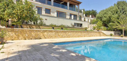 Esta villa está situada en una urbanización tranquila en una ligera colina entre Esporles y Establiments con vistas panorámicas en una parcela de aproximadamente 3.000 m². El centro de la ciudad de Palma está a sólo 17 km. La superficie habitable de aproximadamente 500 m² se distribuye en 2 plantas. Debido a la ubicación en una colina, la entrada se encuentra detrás de la casa en el 1er piso. El hall de entrada conduce al salón con ventanales panorámicos de suelo a techo y fantásticas vistas, comedor, cocina, 1 dormitorio (sin baño) y despacho. En la planta baja hay 4 dormitorios cada uno con vestidor y baño en suite. Aquí también se tiene acceso al garaje con espacio para un coche. La piscina de 15 mx 4 m está rodeada por una terraza para tomar el sol. El equipamiento incluye aire acondicionado f/c, calefacción por radiadores y cocina equipada con electrodomésticos. De lo contrario, la villa no está amueblada y sólo la alquilamos a largo plazo durante al menos 1 año. El alquiler mensual es de 15.000€, 2 meses de fianza y 1,5 meses de comisión de intermediación.