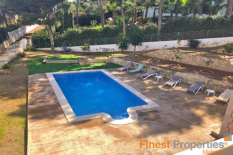 Esta nueva villa se encuentra en una ubicación privilegiada a poca distancia de la playa, tiendas y restaurantes en Palmanova. La villa fue construida en 2015 y equipada con suelos de mármol de alta calidad. 4 amplios dormitorios dobles, 3 baños, salón comedor se distribuyen en una superficie construida de aproximadamente 350m². La gran terraza de aproximadamente 200m² y una piscina de agua salada y una zona de barbacoa completan la oferta. La propiedad también tiene licencia ETV (para alquiler turístico). La calefacción está preinstalada.