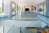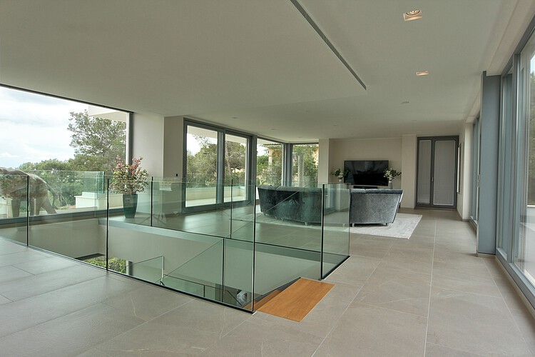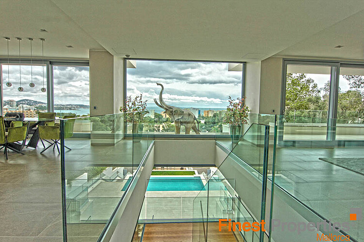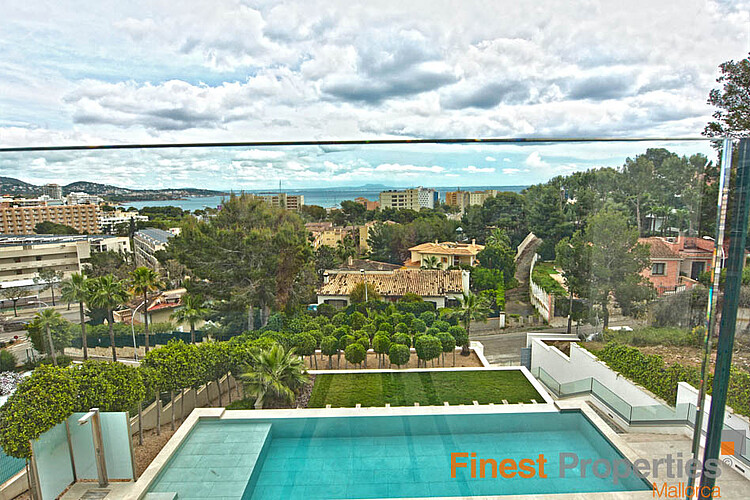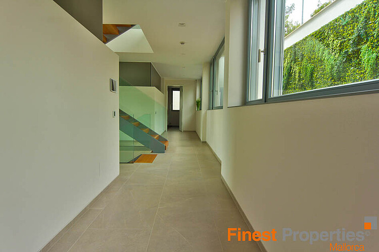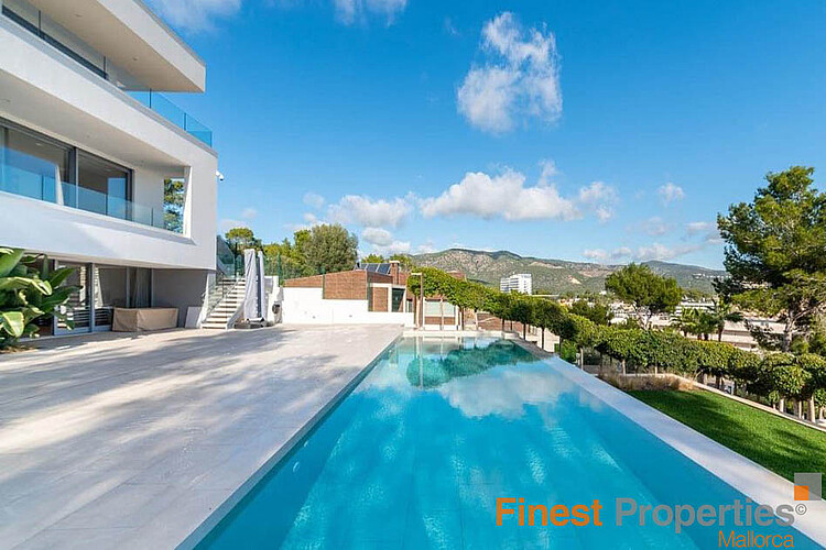 Esta moderna villa fue construida en 2021/22 en una parcela de aproximadamente 1.220 m² en un callejón sin salida. La superficie habitable de aproximadamente 560 m² se distribuye en 3 plantas. En el nivel de la piscina y el jardín hay un garaje con espacio para 2 coches, salas técnicas y trasteros, un dormitorio actualmente utilizado como gimnasio y un baño. En la primera planta hay un luminoso salón-comedor, una moderna cocina de lujo equipada, un aseo de invitados y una terraza. En el nivel de dormir del segundo piso hay 4 dormitorios, todos con baño en suite. Todas las plantas están conectadas por un ascensor panorámico. Lo más destacado es la azotea con cocina exterior preinstalada y vistas panorámicas sobre Palmanova hasta el mar. La villa ha sido equipada con materiales de alta calidad y la última tecnología y ofrece a los clientes preocupados por la calidad un hogar confortable durante todo el año. Las comodidades incluyen calefacción por suelo radiante, aire acondicionado frío/calor, cocina equipada con electrodomésticos de primera calidad, control inteligente del hogar, suelos de piedra y armarios empotrados. La villa se vende sin muebles.