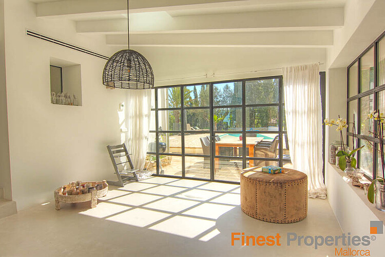 Esta propiedad minimalista en Puigpunyent combina un diseño moderno con la tranquilidad de la naturaleza, ofreciendo una atmósfera exclusiva y relajante.La finca se distingue por su idílica ubicación en medio de la vegetación, a las afueras de Puigpunyent. Las estancias luminosas, una impresionante piscina con vistas panorámicas y una encantadora casa de huéspedes crean un ambiente acogedor y agradable.La casa te recibe a través de una entrada luminosa y abierta que se conecta de manera fluida con la amplia zona de estar. Aquí encontrarás una acogedora chimenea, un rincón de lectura y una cocina abierta. Desde la zona de estar, se accede a un comedor abierto e invitante, que ofrece una vista maravillosa de la terraza y la piscina.En la planta superior se encuentran tres dormitorios, cada uno con acceso a la terraza, y dos baños modernos. Una casa de huéspedes independiente, equipada con un dormitorio y un baño, ofrece el espacio perfecto para los visitantes.La propiedad cuenta con un garaje para un vehículo, así como una plaza de aparcamiento en el patio para otro coche.Además, la finca está equipada con una cocina moderna con el sistema Bora, una lavandería independiente, una bodega, aire acondicionado (frío/calor), calefacción por suelo radiante y, por supuesto, una chimenea.