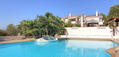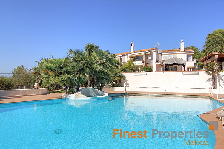 La mansión con 500 m² de superficie habitable fue construida en el año 1997 sobre un solar de 8.000 m². El amplio y luminoso salón es el centro de la villa que cuenta con 6 dormitorios y 5 baños. El aire acondicionado crea una comfortable temperatura ambiente en verano e invierno. La amplia zona de piscina está rodeada de terrazas soleadas, una barbacoa cubierta y un pequeño campo de fútbol. El jardín es de fácil mantenimiento y tiene riego automático con agua que viene del propio pozo. Además, hay un doble garaje y varias plazas de aparcamiento.
