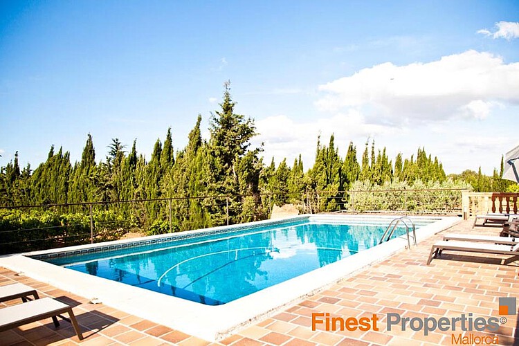 Esta finca está situada entre Palme y Sineu. El campo de golf Puntiro se encuentra a pocos kilómetros. La finca fue construida en 2006 en un terreno llano de 38.000 m². La propiedad ofrece aproximadamente 540 m² de superficie habitable, repartidos en 2 plantas. En la planta baja se encuentra el salón-comedor, el salón-cocina además de un dormitorio y un baño. En la 1ª planta hay 4 dormitorios y un baño. A través de la terraza se accede a un tercer baño, ideal después de tomar el sol en la terraza junto a la piscina. Para los amantes de la barbacoa hay una caseta de barbacoa con cocina. El equipamiento incluye aire acondicionado f/c, calefacción central preinstalada, 2 chimeneas, conexión eléctrica. Un pozo profundo privado suministra agua a la casa y al jardín y más de 600 árboles frutales y olivos esperan ser cosechados. ¡Presiona tu propio aceite de oliva! También ideal para los amantes de los caballos.